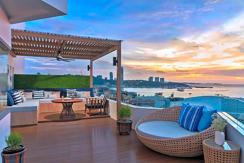 Features floor-to-ceiling windows offering views of the Gulf of Siam. Includes a spacious bathroom.
