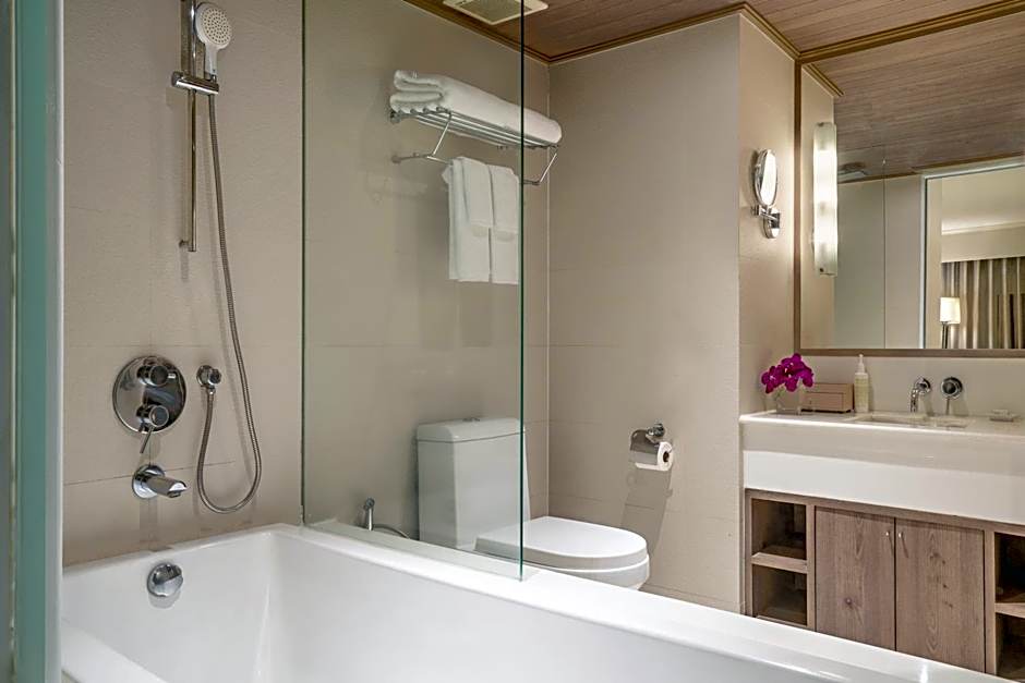 This spacious suite consists of 1 living room, 1 separate bedroom and 1 bathroom with a walk-in shower and free toiletries. The air-conditioned suite provides a flat-screen TV with cable channels, executive lounge access, a coffee machine, a seating area as well as sea views. The unit offers 1 bed.